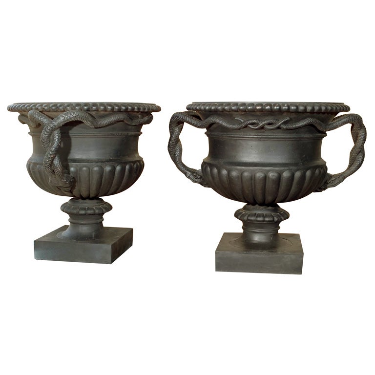 pair cast iron urns entwined serpent handles